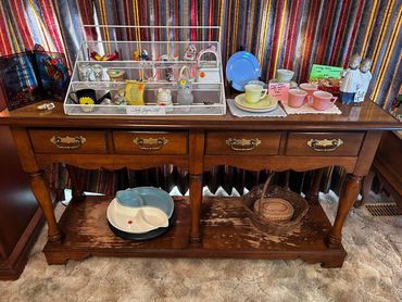 Lift chair, power wheelchair, medical bed, piano, double beds, dressers, dining table and chairs, refrigerator, Tupperware, sewing machine, buffet cabinet, small kitchen appliances, couch, rocker, antique secretary and vanity, Christmas decorations, ceramic trees, quilts, toys, cedar chest, side tables, chest, garage and yard tools, Christmas blow molds, card table, Allen and Heath mixer, John Deere riding mower, jewelry, and numerous other items to explore.